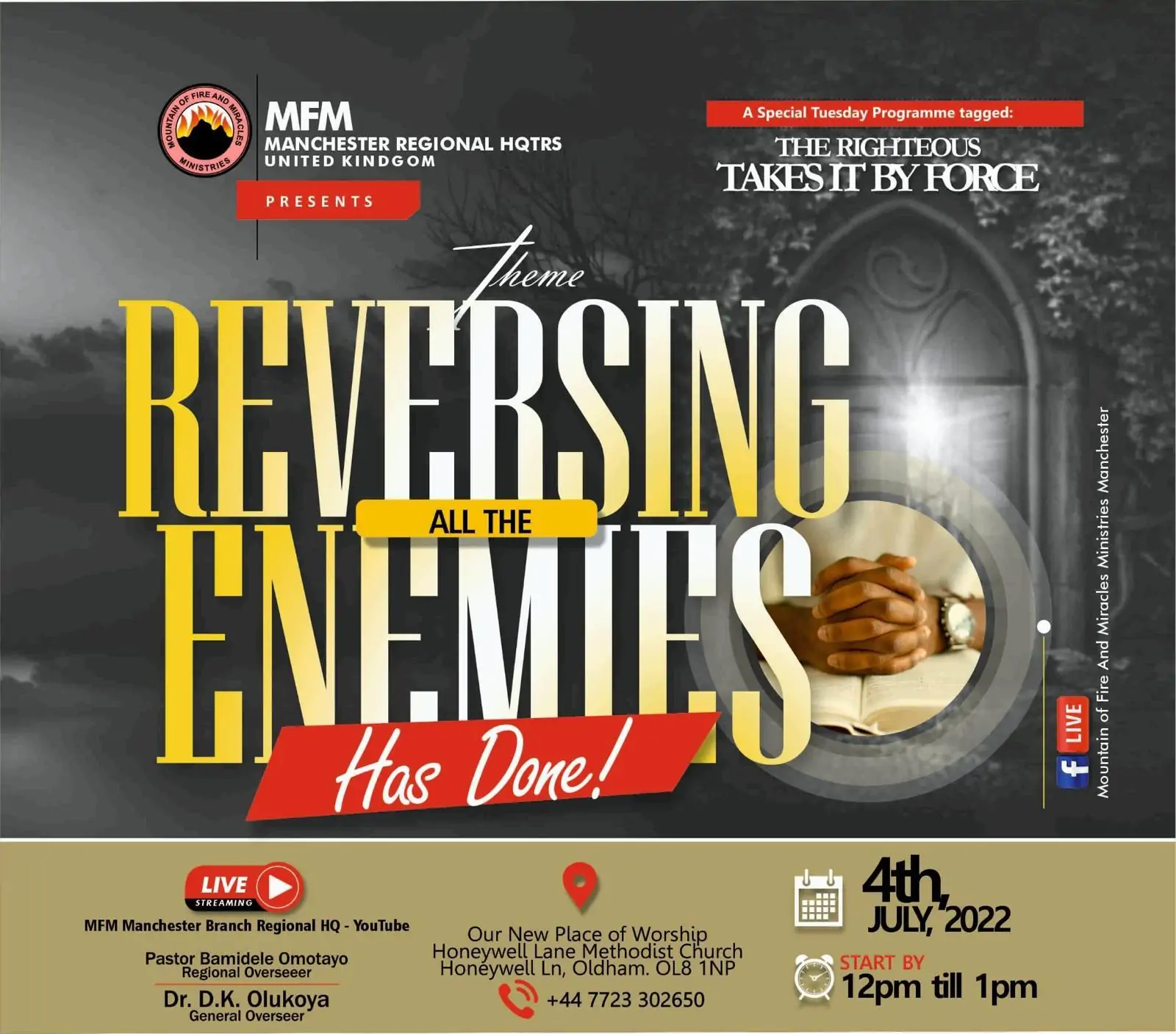 Home Events - MFM Manchester The Righteous Taketh it by Force The Righteous Taketh it by Force Lunch Time Prayer There will be counselling session after the service + Add to Google Calendar + iCal / Outlook export days99004455hours99002233minutes44557788seconds11225566 Date Oct 14 2025 Time 12:00 pm - 1:00 pm Local Time Timezone: America/New_York Date: Oct 14 2025 Time: 7:00 am - 8:00 am Labels Revival Service Location Main Church Category Recurring Services Organizer MFM Manchester Phone 0772 330 2650 Email info@mfmmanchester.org.uk Next Occurrence Go to occurrence page Date Oct 21 2025 Time 12:00 pm - 1:00 pm Share this event